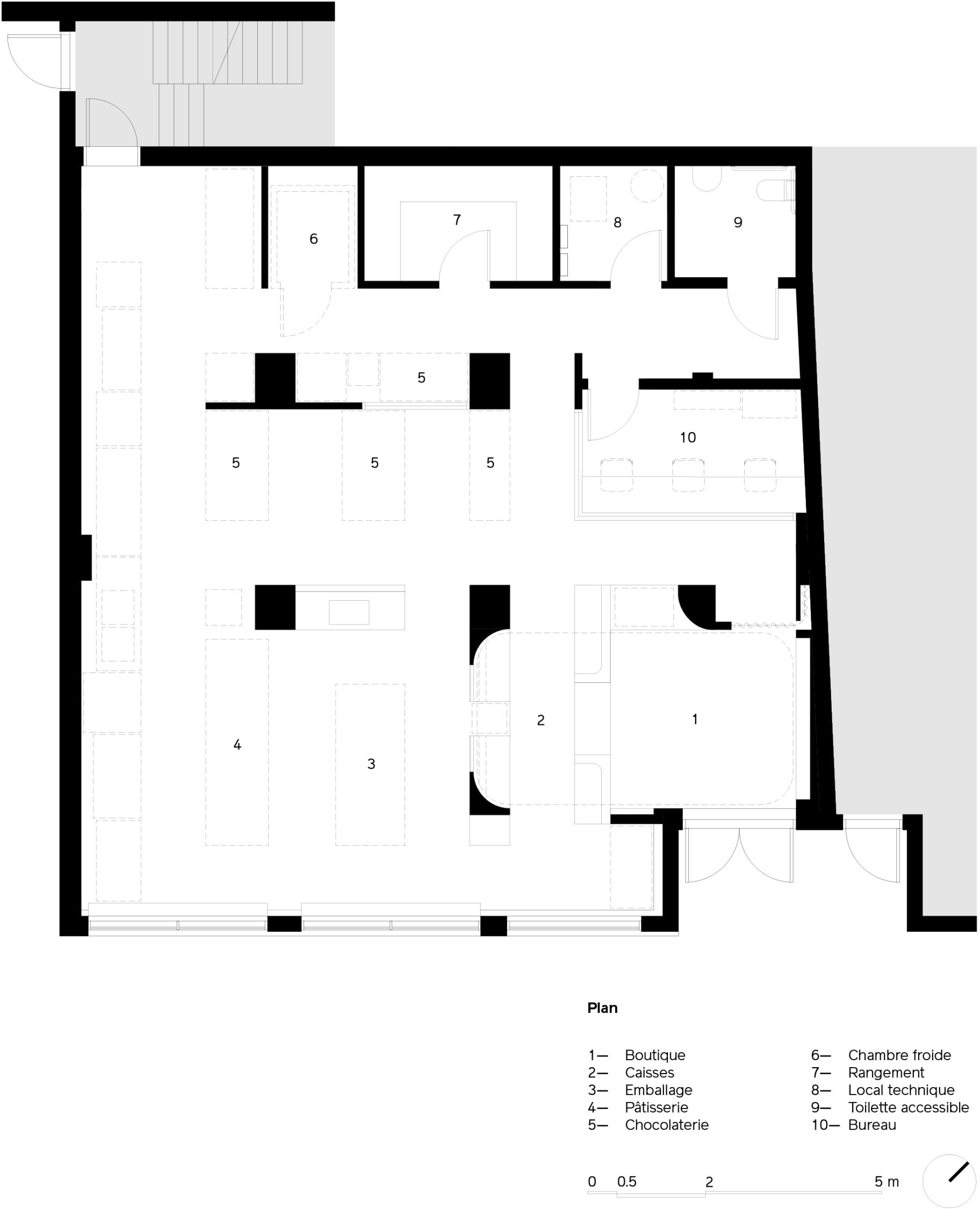 Du programme élaboré émane la quintessence de leurs aspirations : un espace boutique à la fois fonctionnel et esthétique, une zone caisse permettant de jongler habilement entre commandes en ligne et achats sur place, des zones de préparation stratégiquement disposées pour sublimer chaque création et un espace bureau offrant une vue imprenable sur leur royaume sucré.